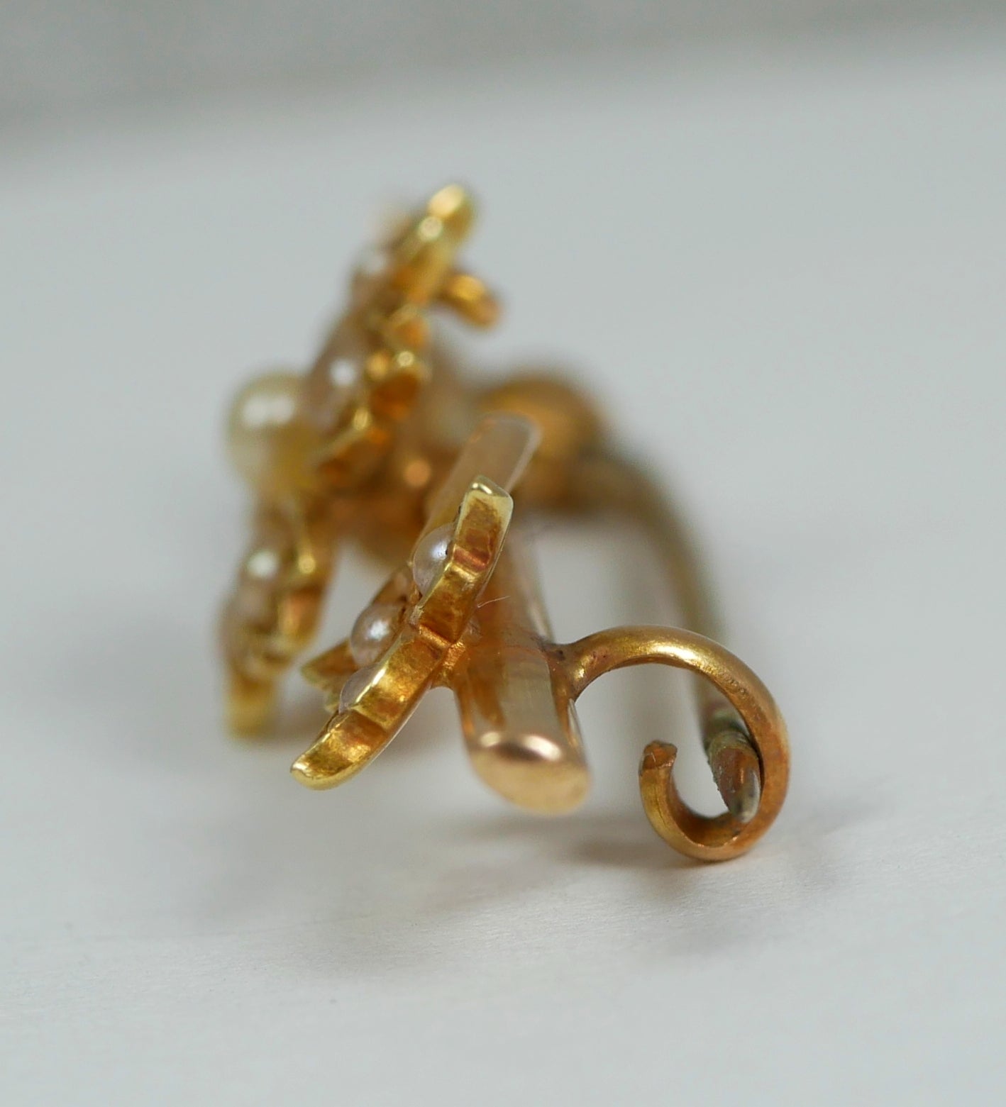 Antique Art Deco 1925 Solid 15ct Yellow Gold & Seed Pearl Cluster Flower Brooch