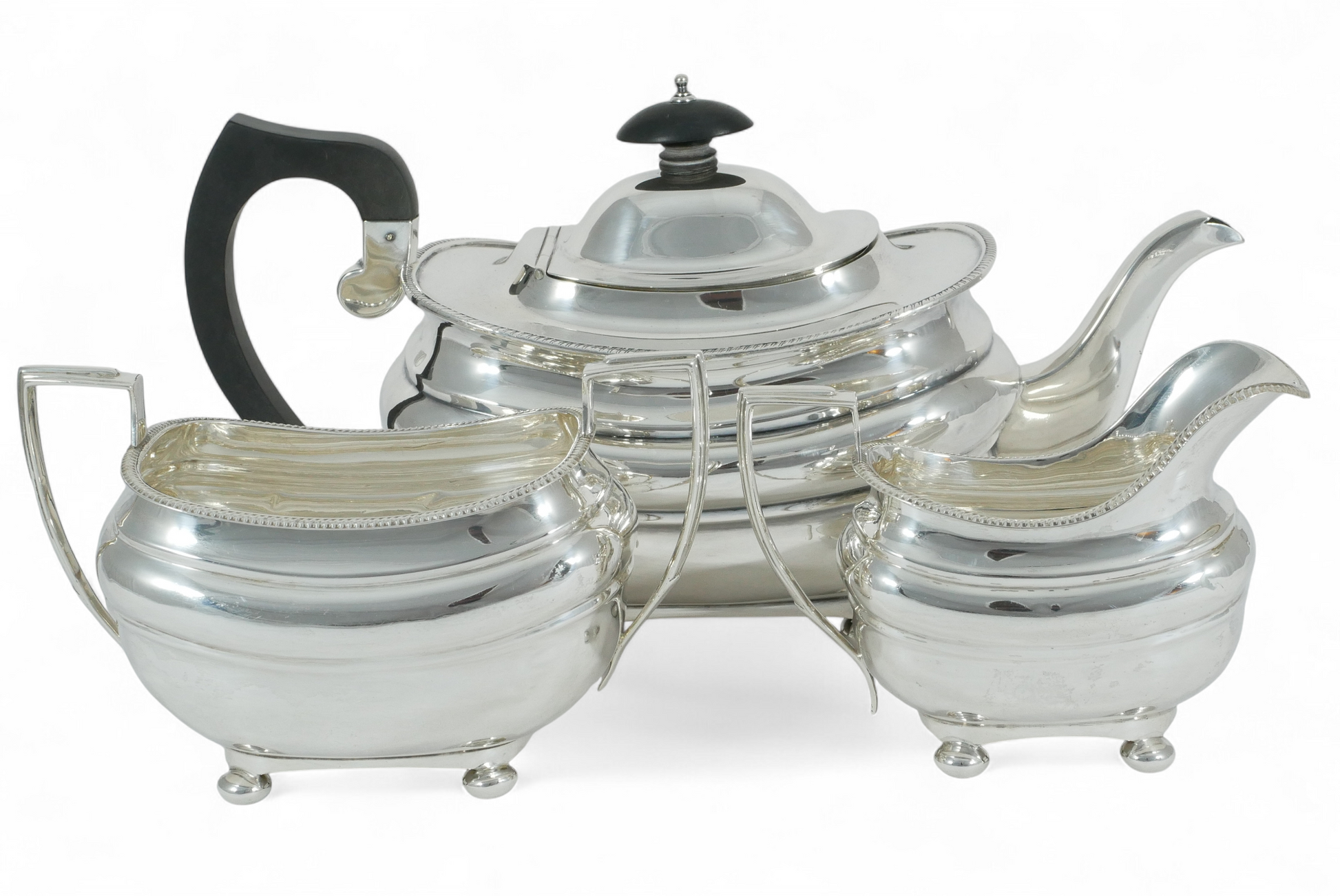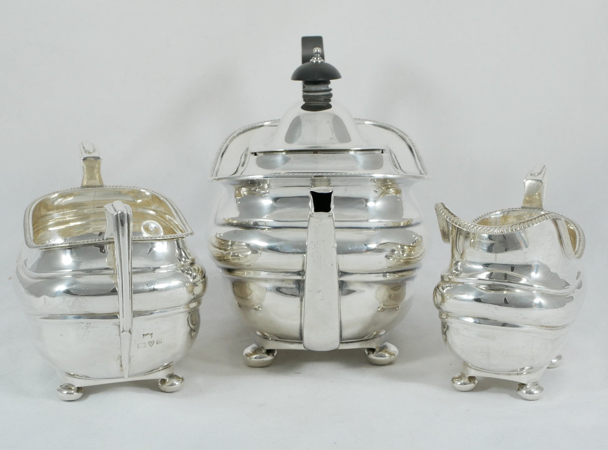 Antique Art Deco 1932 Sterling Silver 3pc Tea Set Teapot Sugar Bowl Creamer Jug