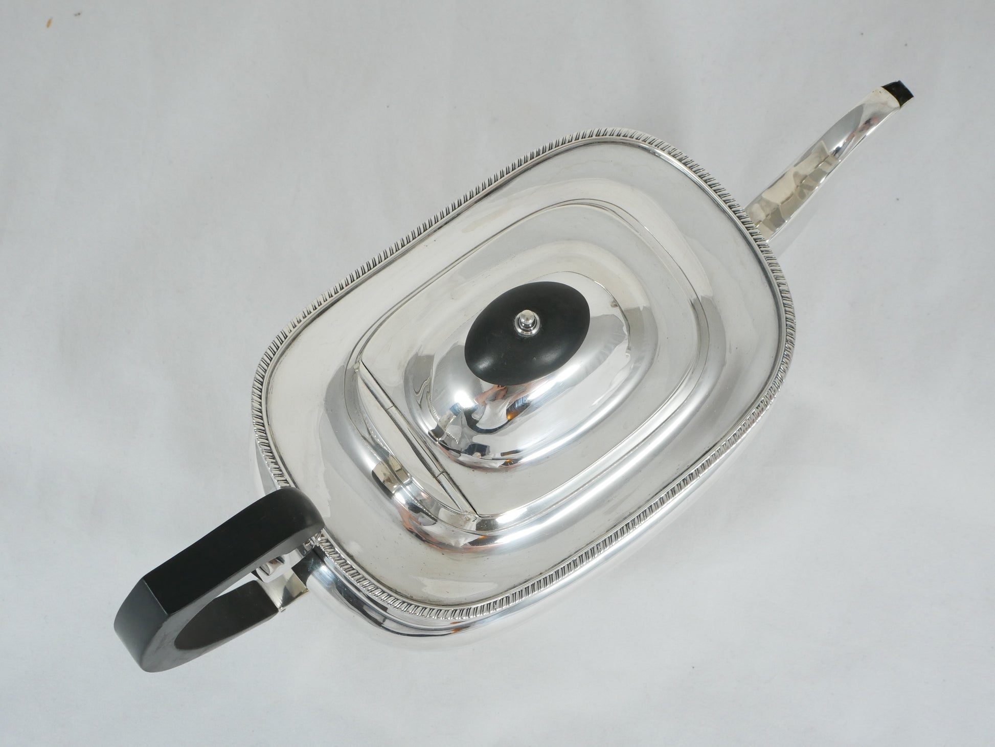 Here today for your consideration we have this lovely Art Deco sterling silver three-piece tea set, made by S Blanckensee & Son Ltd of Chester, c-1932. The set includes a teapot, sugar bowl and creamer, each of matching design and hallmark. Condition is reasonably good used, with a few minor depressions here and there and with the teapot lid sitting a couple of millimeters proud (hinge a little stiff, lubrication may help). The set is free from monogram or crest, with the hallmarks about 60% overall (fading in places). The handle is without movement, with the spout pouring beautifully. A fine quality solid silver tea set ready for service.