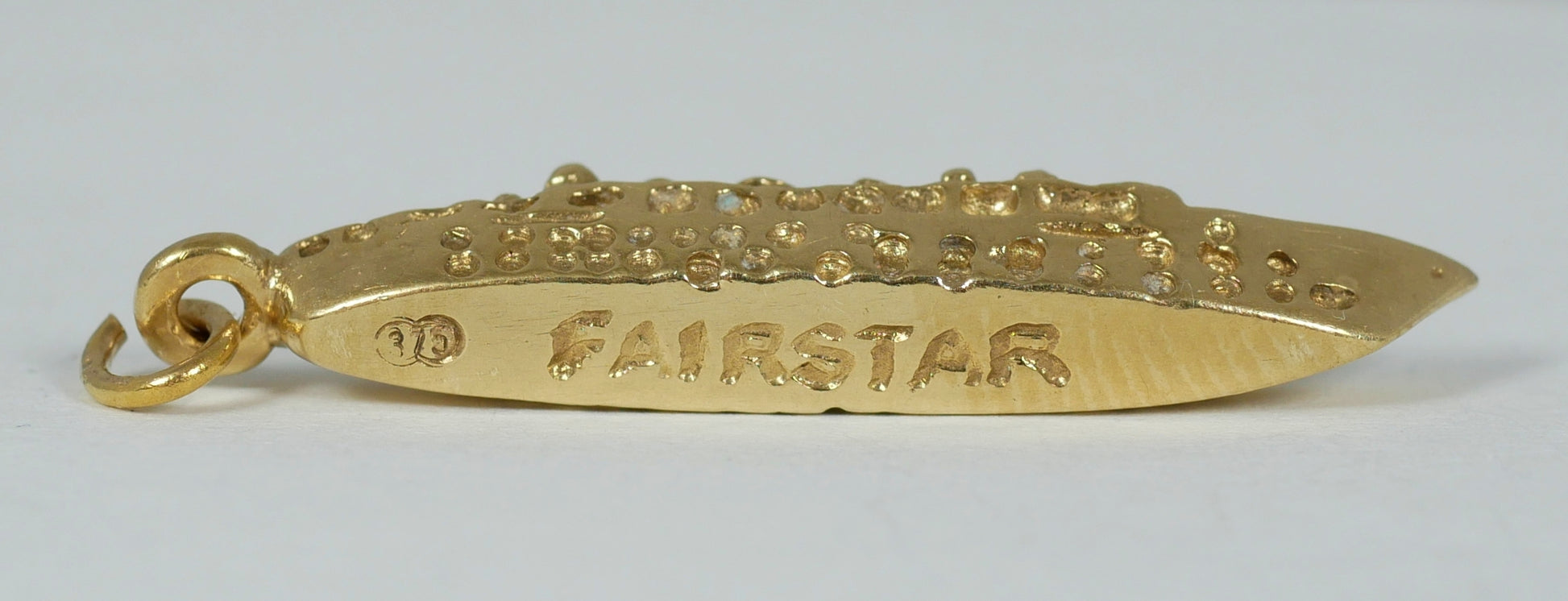 Here today for your consideration we have this wonderful vintage 9ct solid yellow gold small pendant or charm taking the form of the TSS Fairstar, which was an Australian cruise ship operated by Sitmar and P&O from 1964 until 1997. The charm is solid and is in good condition with no damage to note. A very attractive piece for the collection.