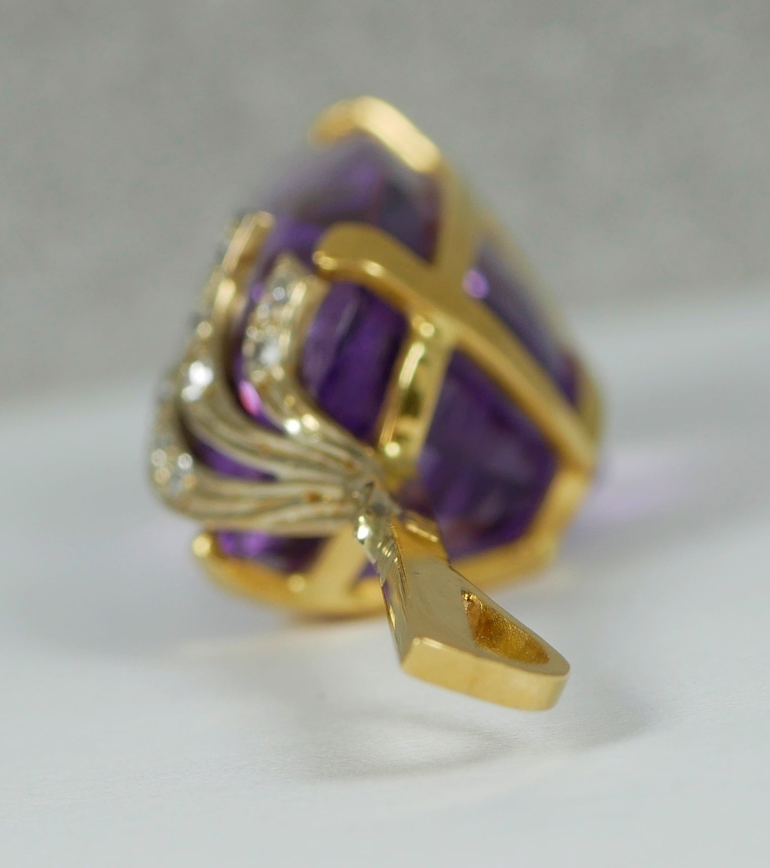 Large 47mm Solid 18ct Yellow Gold 34ct Amethyst & Diamond Necklace Pendant 12gm