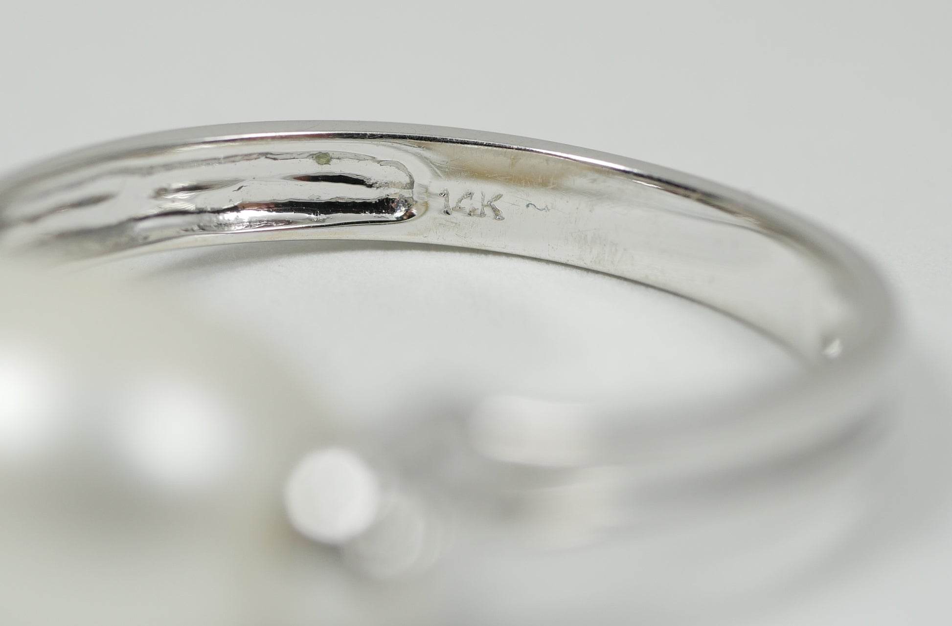 Here today for your consideration we have this beautiful contemporary solid 14ct white gold ring, featuring a central spinning oval white pearl. The ring is brand new ex-jeweller's stock and is of very good quality throughout. The pearl maintains full lustre, with the white gold without wear or abrasion. An interesting solid gold pearl ring for the collection.