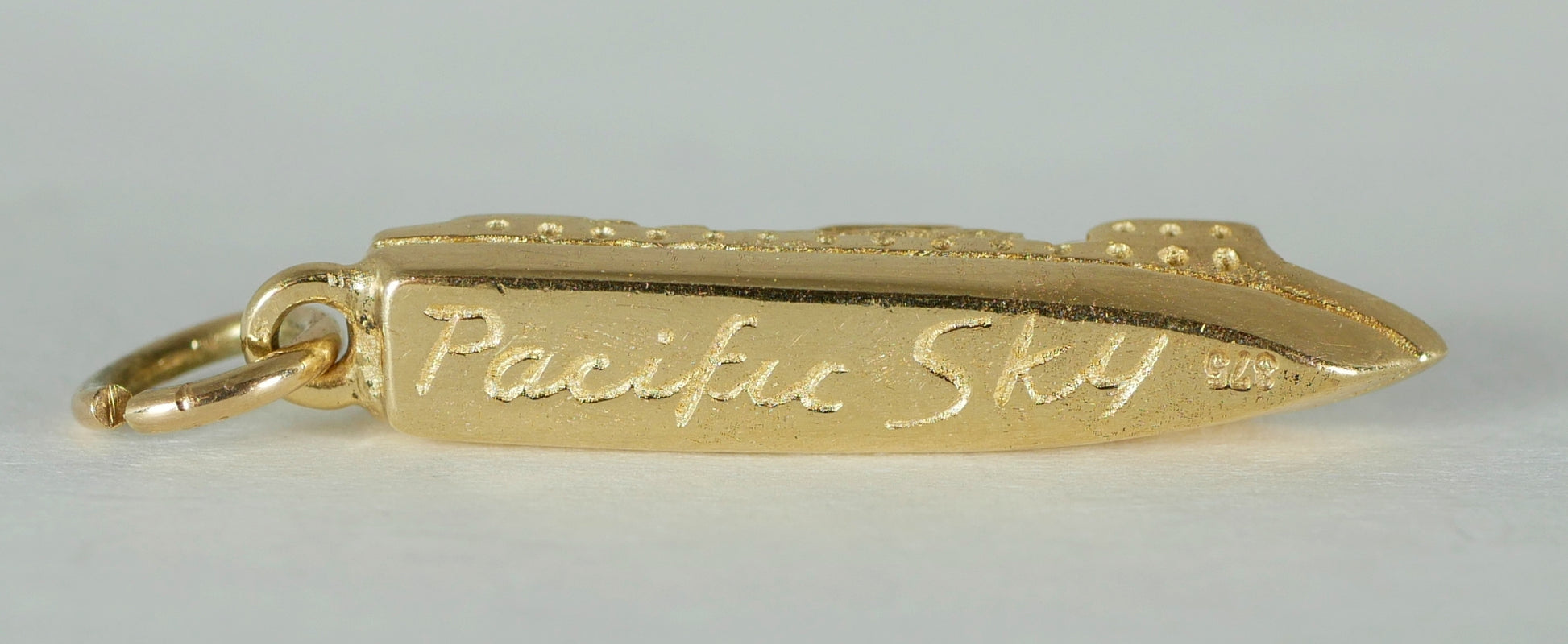 Solid 9ct Yellow Gold Cruise Ship Pacific Sky Ocean Liner Boat Pendant Charm P&O