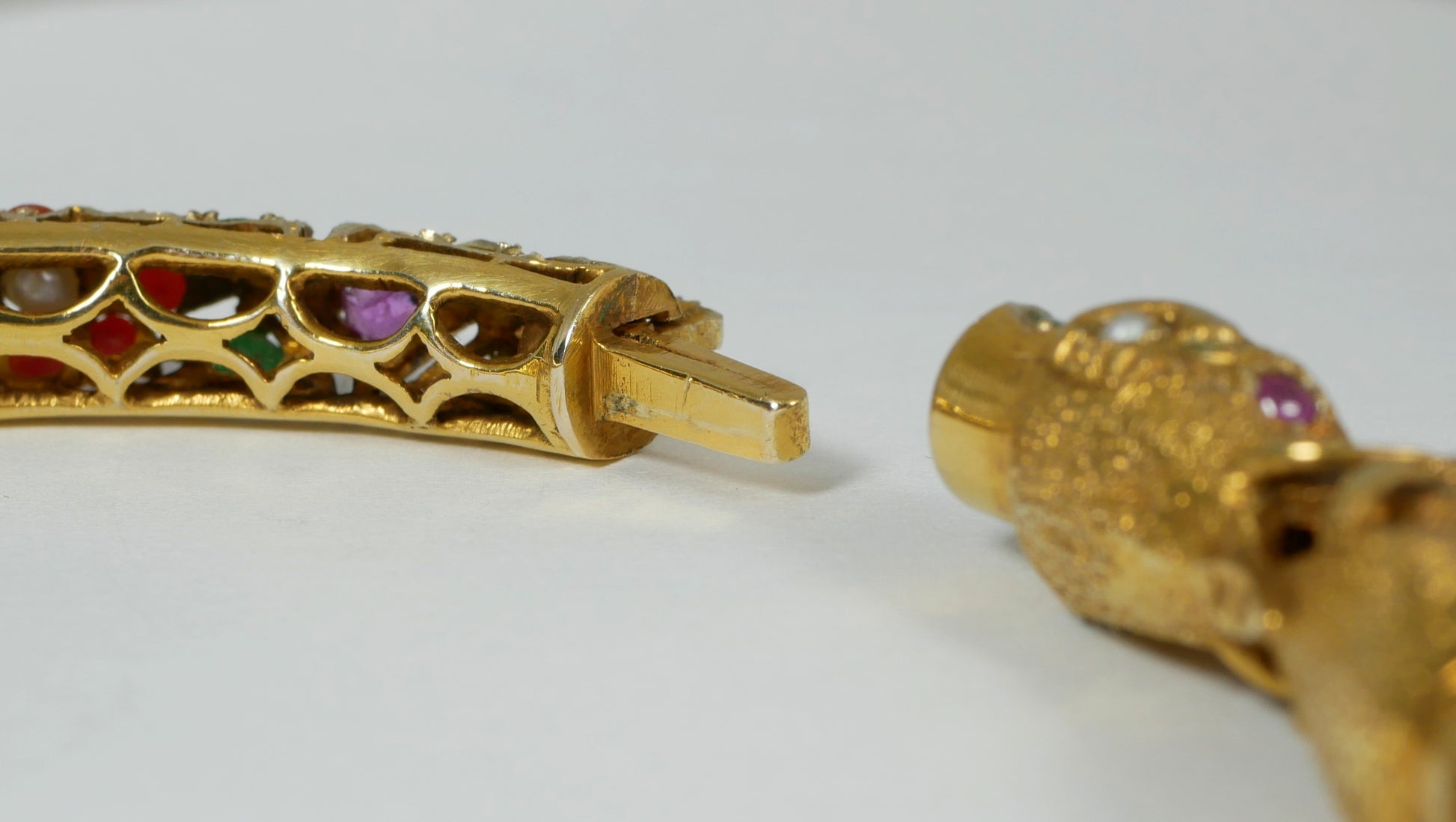 Vintage Indian Mughal Solid 9ct Yellow Gold & Precious Gemstone Bangle Elephant