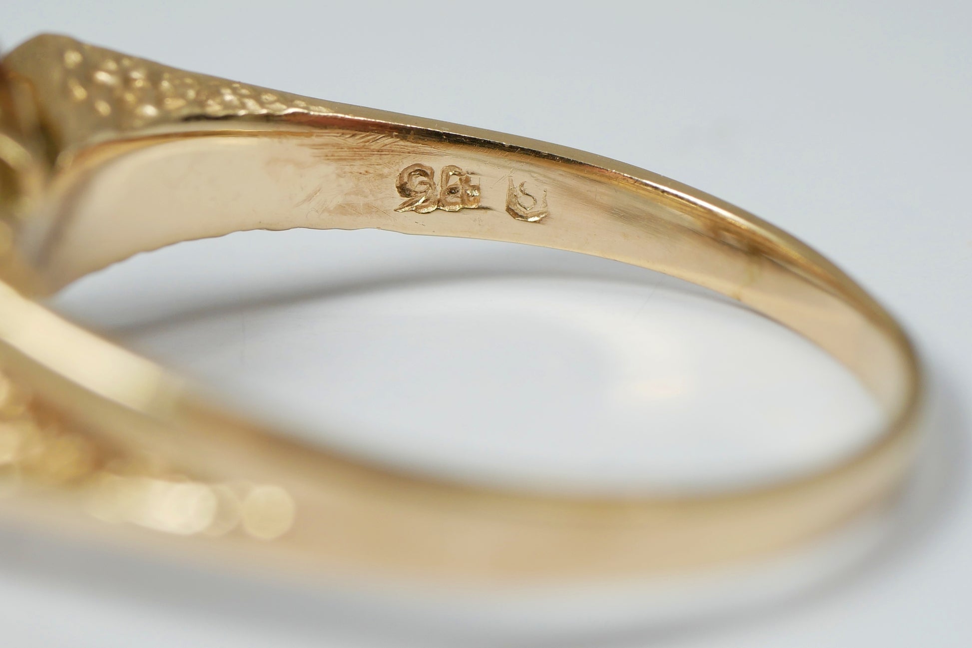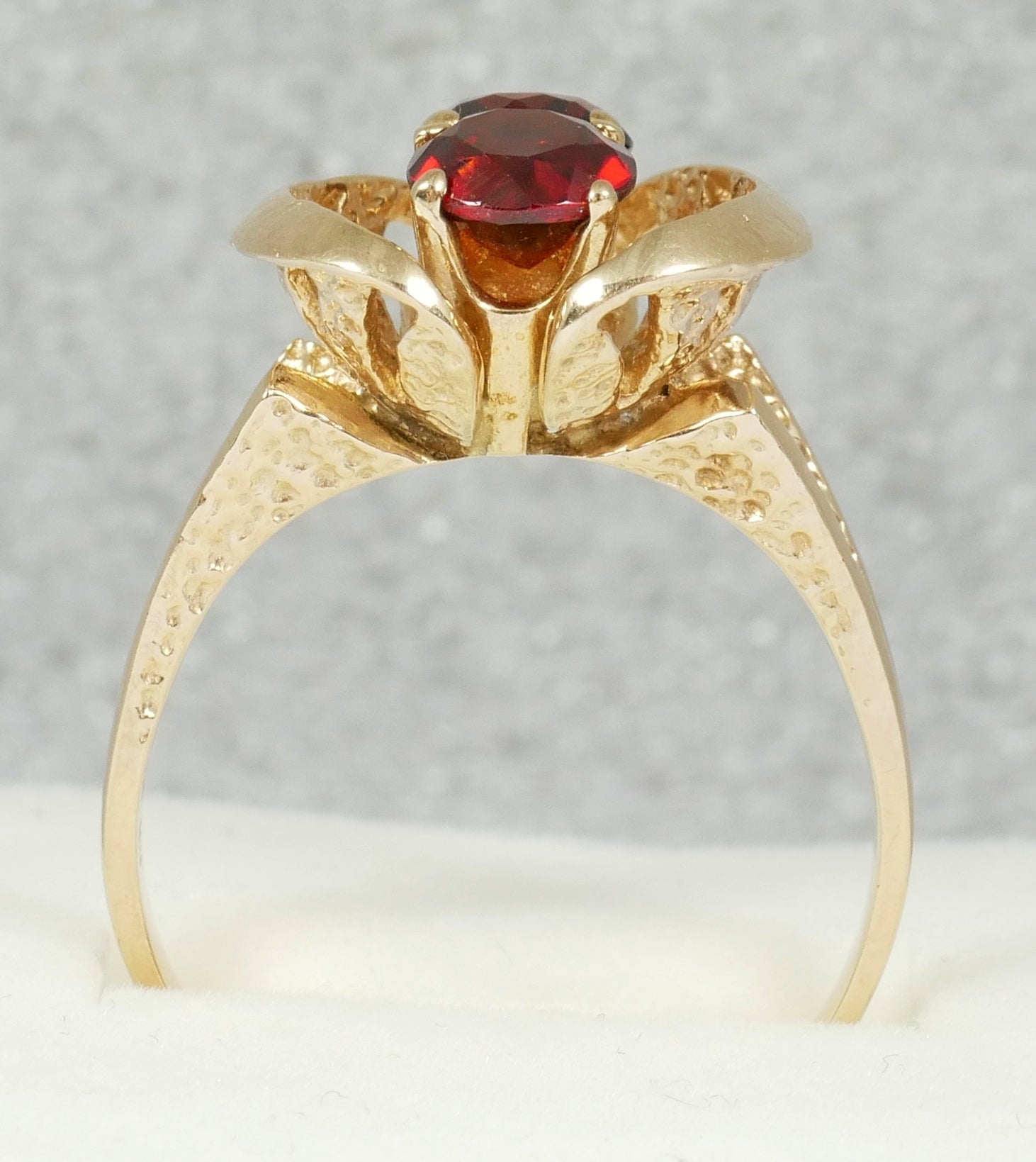 Vintage Retro 9ct Textured Yellow Gold Red Garnet Dress Ring Size 10.5 U 63 375