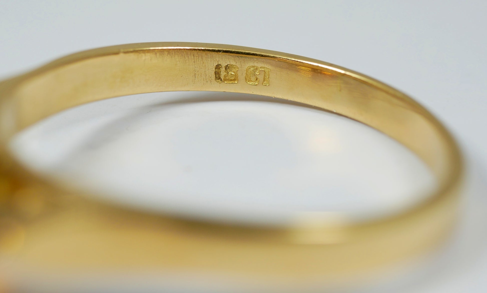 The main stone measures approximately 11mm x 9mm and has an estimated weight of 3.28cts, with the diamonds having a total estimated weight of 0.22cts. The band is sized a large US 10.5, UK U and EU 63. Unpacked, it weighs in at 6.84gms.