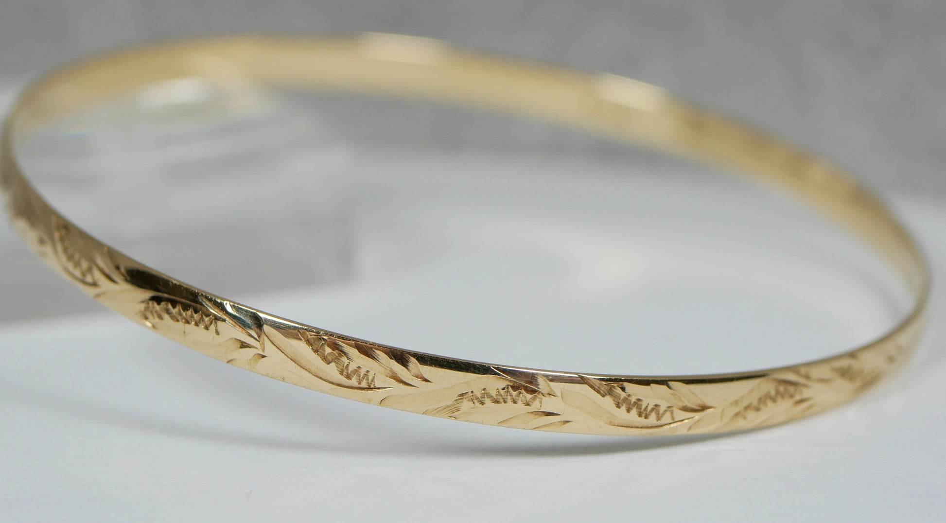 Vintage Solid 9ct Yellow Gold 65mm 2.5" Bright Cut 4mm D Profile Bangle 7.35gm