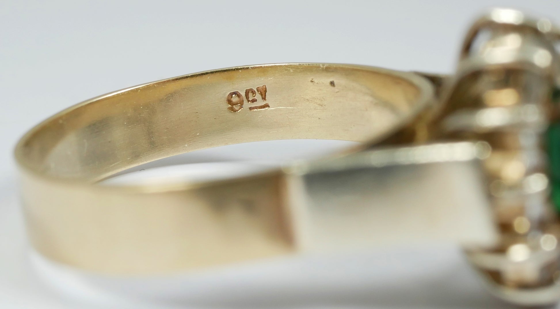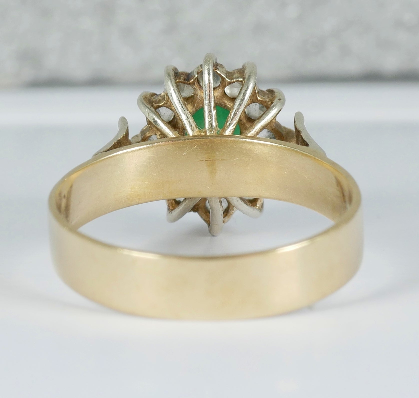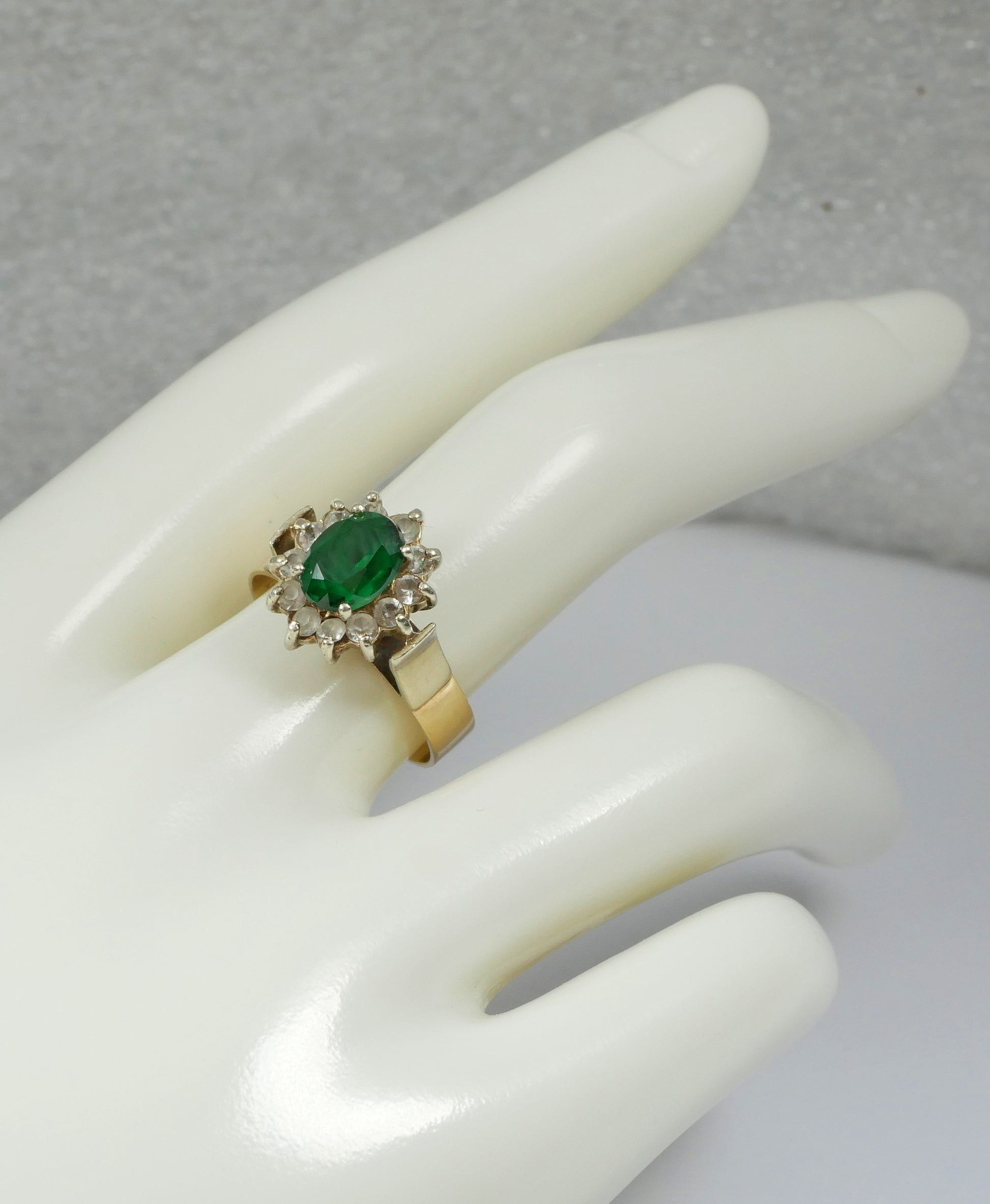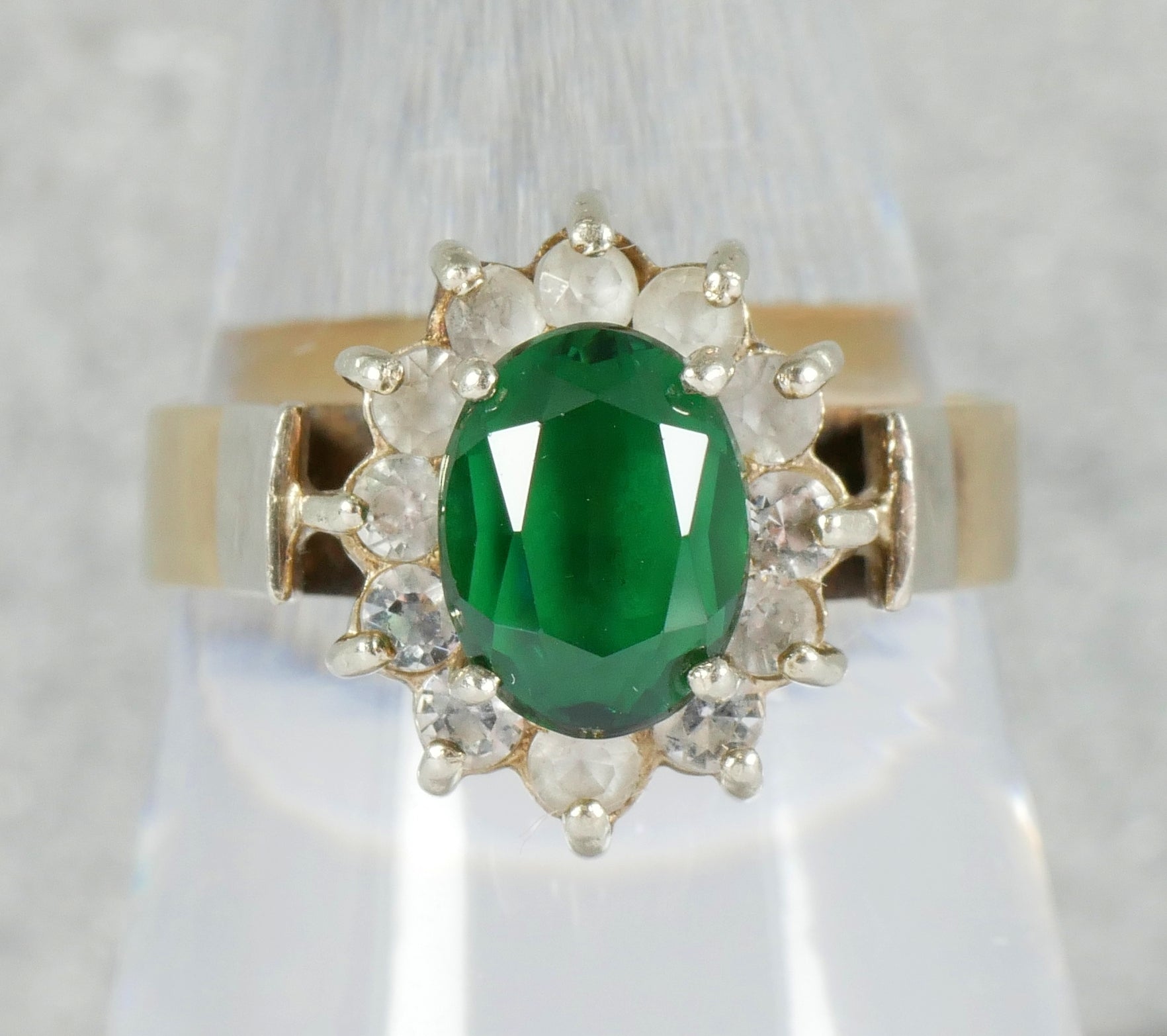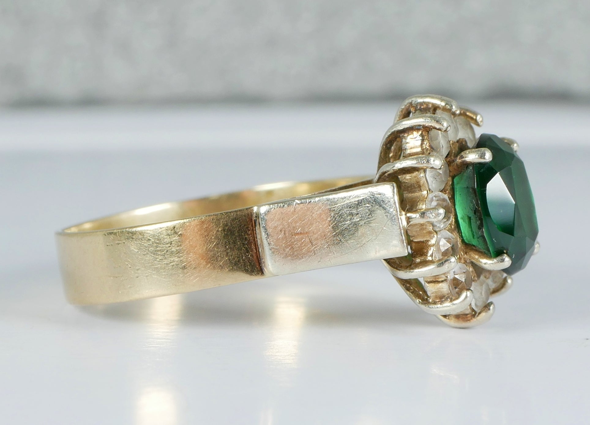 Vintage Solid 9ct Yellow Gold Green & White Sapphire Halo Dress Ring Size 8 P 56
